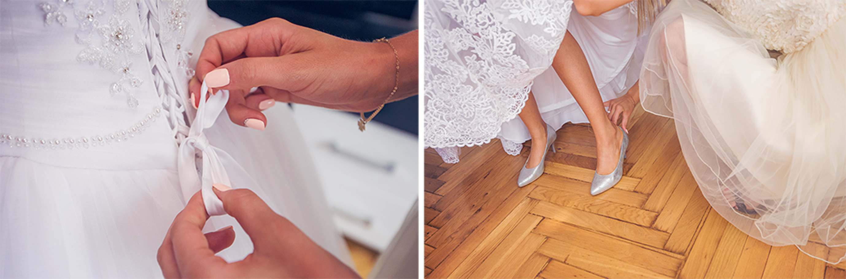 Zwykle prace zaczynamy wcześnie rano u Panny Młodej (lub salonie kosmetycznym) fotografując prace fryzjera i makijażystki. Jeszcze krótka wizyta u Narzeczonego i zaczynamy oficjalne uroczystości. Błogosławieństwo, przejazd do kościoła to wstęp do podniosłej uroczystości zaślubin. Uroczystości na której robimy reportaż, ale tak aby nie być "gwiazdami" i nie zakłócać tej podniosłej chwili. Uroczystości radosnej i wzruszającej co staramy się oddać na naszych zdjęciach ślubnych. A dalej "już z górki". Mniej lubiane przez fotografów życzenia :). Pierwszy taniec i zabawa do rana. Znaczy dla nas do oczepin.