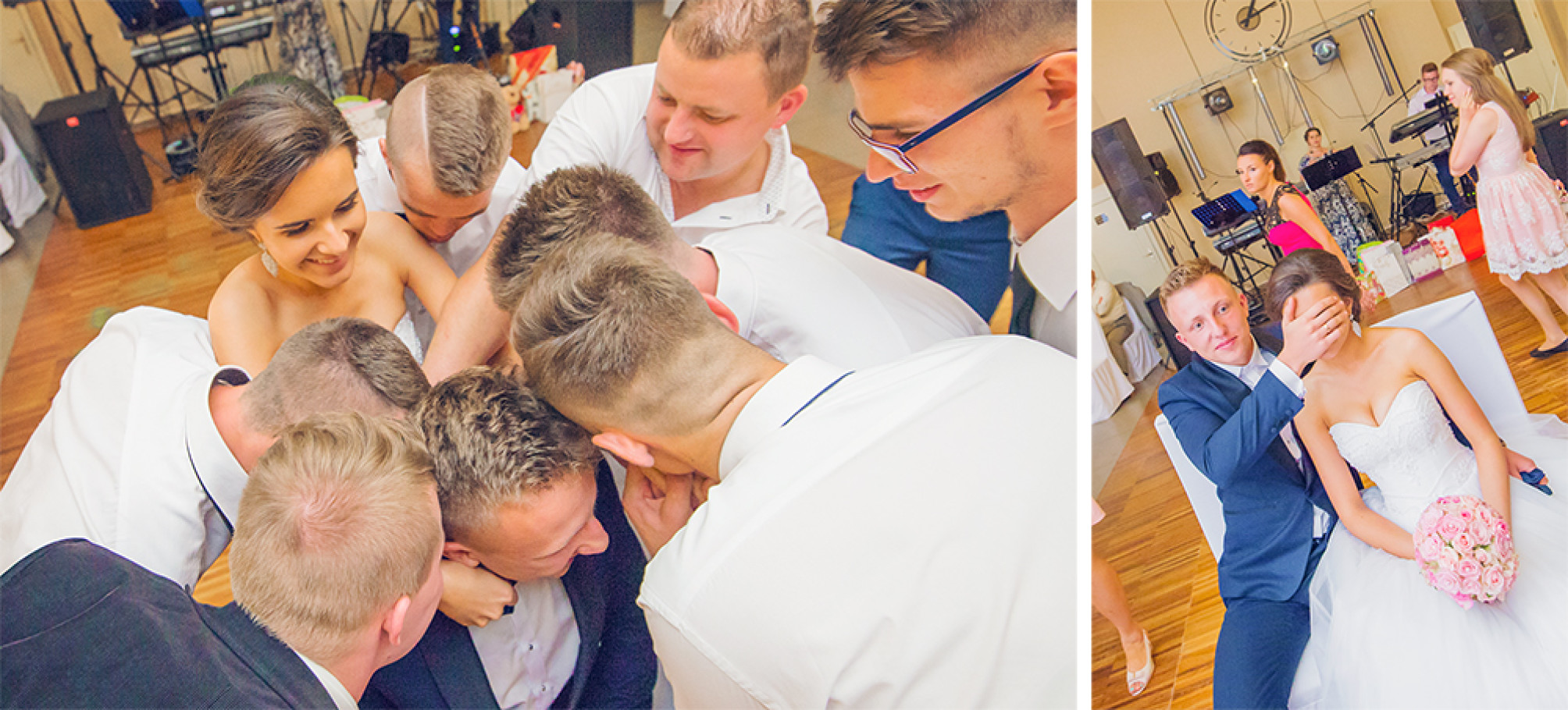 Zabawy weselne – jedni je uwielbiają, dla innych to kompletna żenada J Dla nas to okazja do złapania   niepowtarzalnych, szalonych, i śmiesznych ujęć.  Pęknięte spodnie, głupie miny i dziwaczne pozy są częstymi  gośćmi ujęć, ale to ostatecznie Młodzi decydują które zdjęcia ujrzą światło dzienne i  trafią do albumu, strony czy na odbitki a które zostaną skasowane na zawsze.