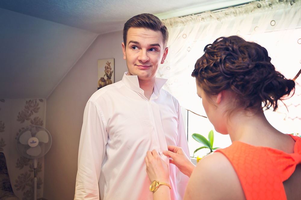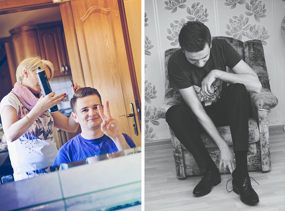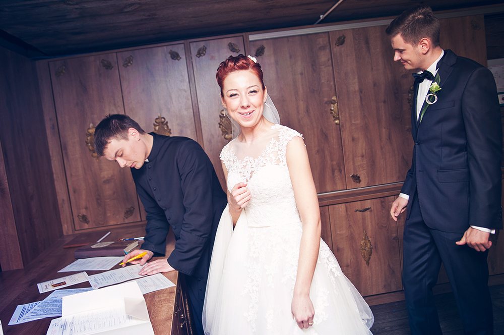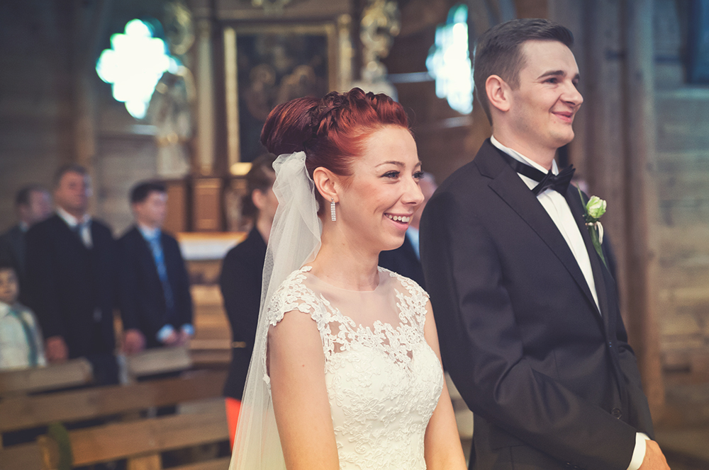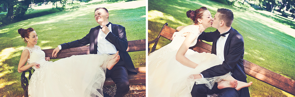 Cudnie roześmiana Miśka, która usilnie nie dopuszcza do siebie myśli, że jest piękną kobietą i niesamowicie, najbardziej cierpliwy Pan Młody w naszej karierze :). Jak się do tego doda różowe skarpetki, jeża i trzy rozbrykane Yorki….. to wiecie – cyrk na kółkach :D. Takiej Pary Młodej nie zapomina się nigdy 🙂